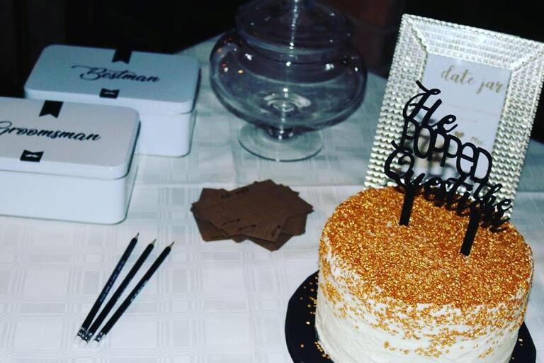 2 Layer Chocolate cake with Buttercream Icing and Gold detail