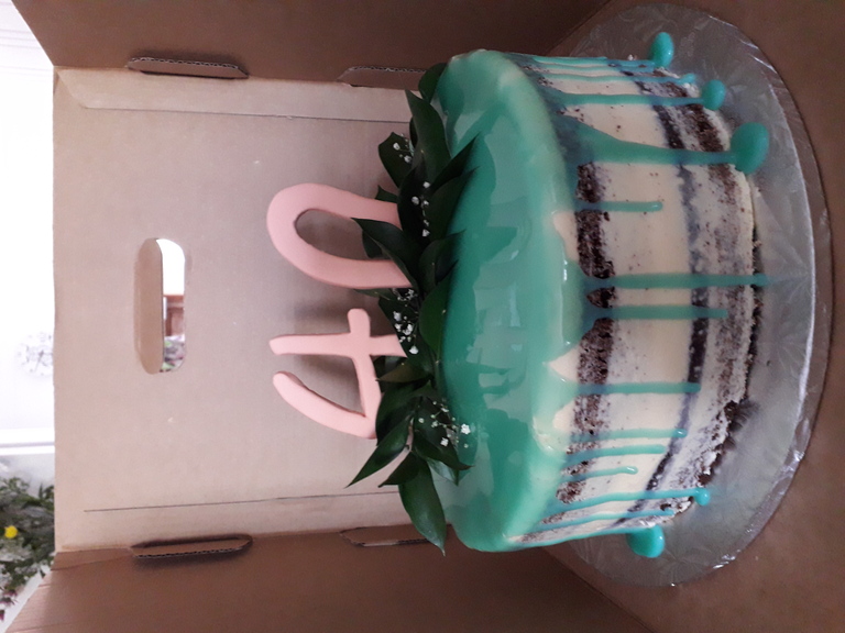 2 Layer Chocolate cake, naked Buttercream Icing with mirror glaze