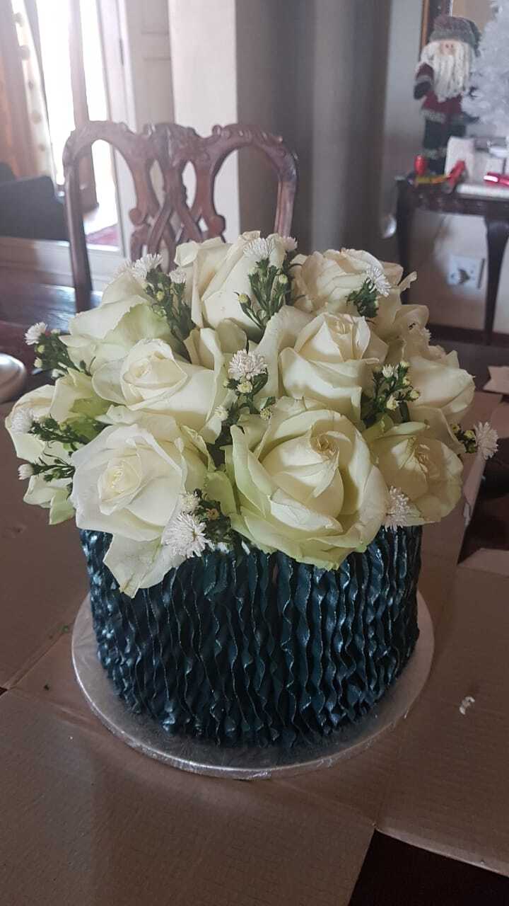 3 Layer Chcolate cake with Buttercream Icing Piping detail and fresh roses
