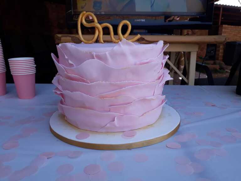 1 Layer Vanilla cake with Buttercream Icing and covered in Fondant with Fondant detail