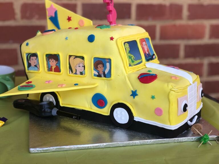 Magic School Bus theme - Chocolate cake with buttercream Icing covered in Fondant and Fondant detail