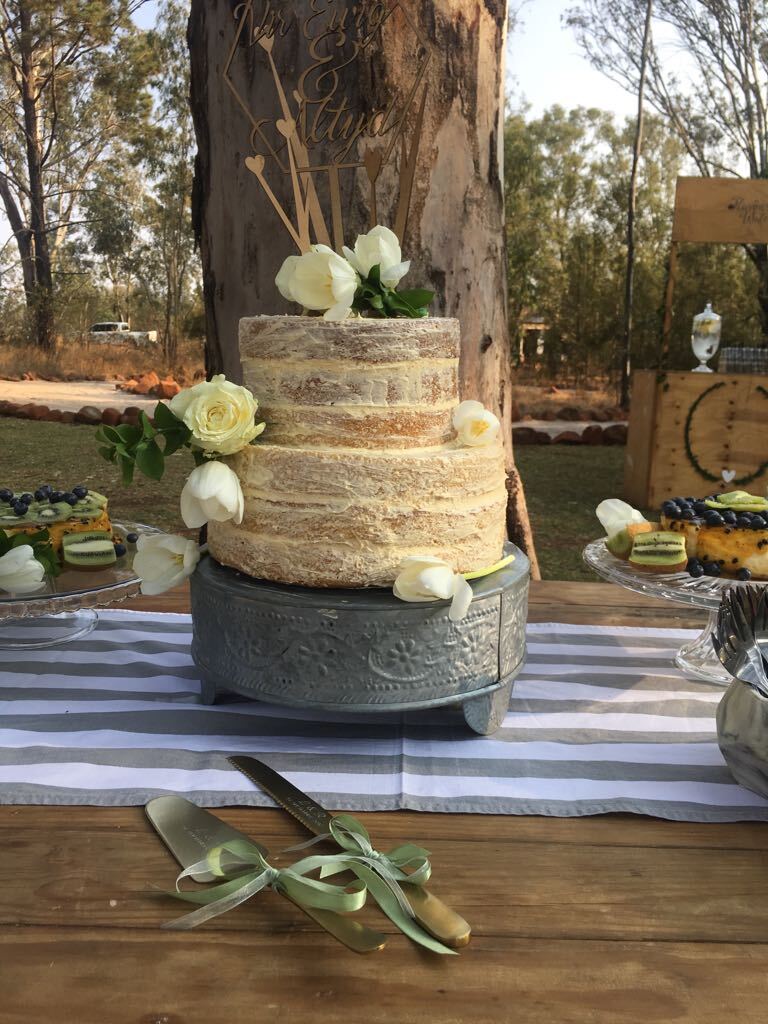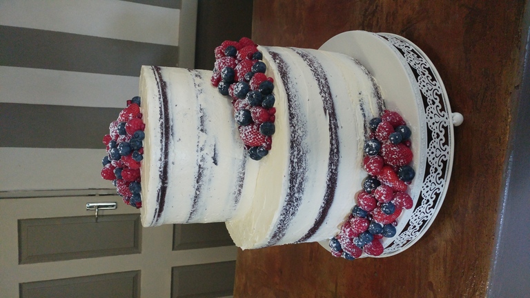 Naked Wedding cake - 2 Tiered, 3 Layer Chocolate cake with Buttercream Icing and fresh Berries