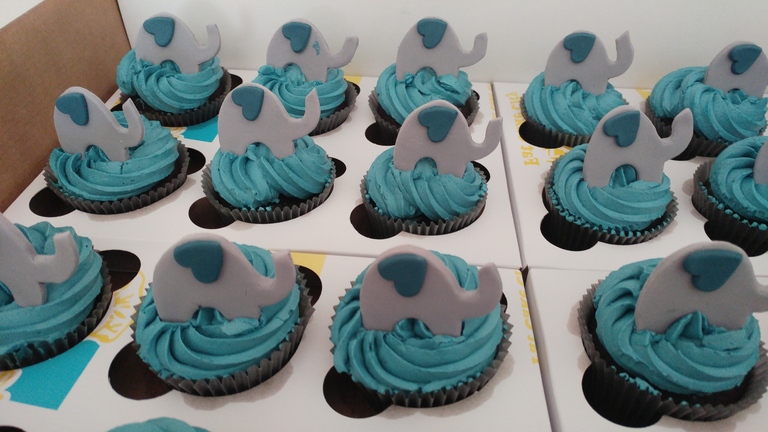 Chocolate cupcakes with Italian Buttercream Icing and Fondant Elephants