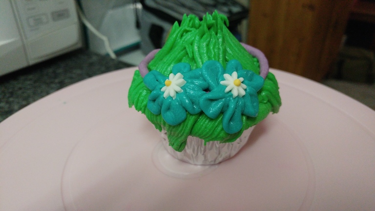 Trolls theme - Vanilla cupcake with Buttercream Icing piped detail